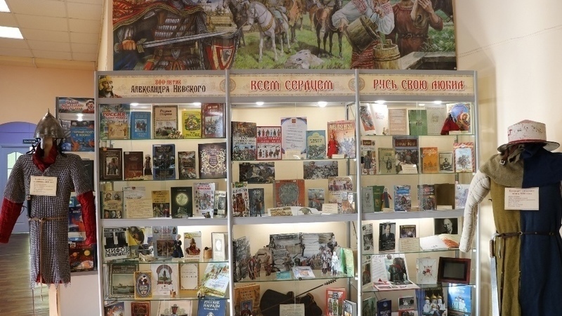 Экспозиция раскрывает многообразие информационных ресурсов, в которых отражены наиболее яркие события истории Древней Руси XIII века, основные этапы жизни и деятельности Александра Невского, важнейшие сражения и великие ратные подвиги русского воинства. Документы знакомят с воплощением образа князя-ратоборца в литературе. Исторические романы и рассказы предлагают литературные версии жизни и подвигов Александра Невского, повествуют о формировании характера князя с детских лет. Образ легендарного полководца, государственного деятеля, святого благоверного князя вдохновил иконописцев, русских и советских художников, скульпторов, композиторов, режиссёров на создание разнообразных произведений искусства.
