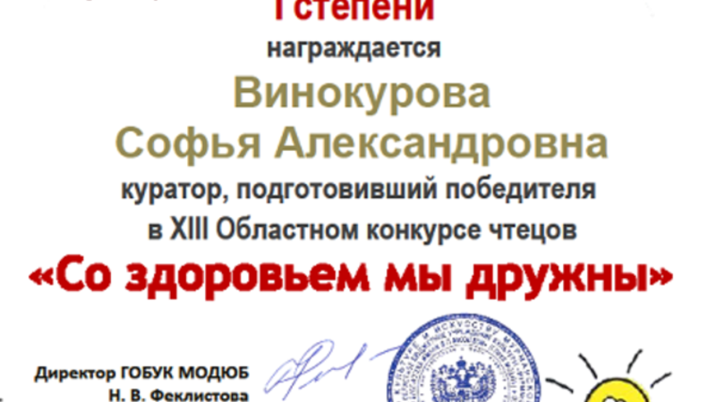 Продолжаем серию публикаций лучших работ с Областного конкурса чтецов «Со здоровьем мы дружны!