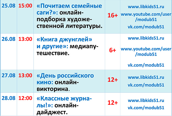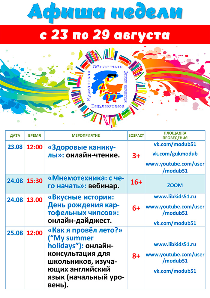 Дорогие посетители, знакомьтесь с программой онлайн-мероприятий на 23-29 августа