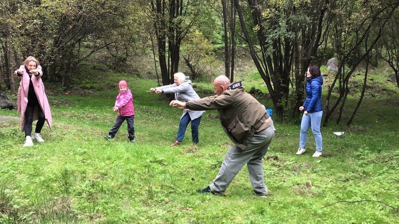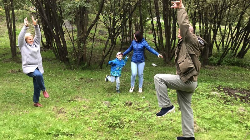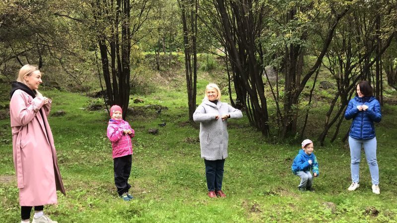 Сергей Ерёмкин и сотрудники Мурманской областной детско-юношеской библиотеки имени В. П. Махаевой вместе с читателями начали утро субботы с игровой тренировки на свежем воздухе. Участники зарядки превращались в медведя, хитрую обезьянку, северного оленя, аиста.