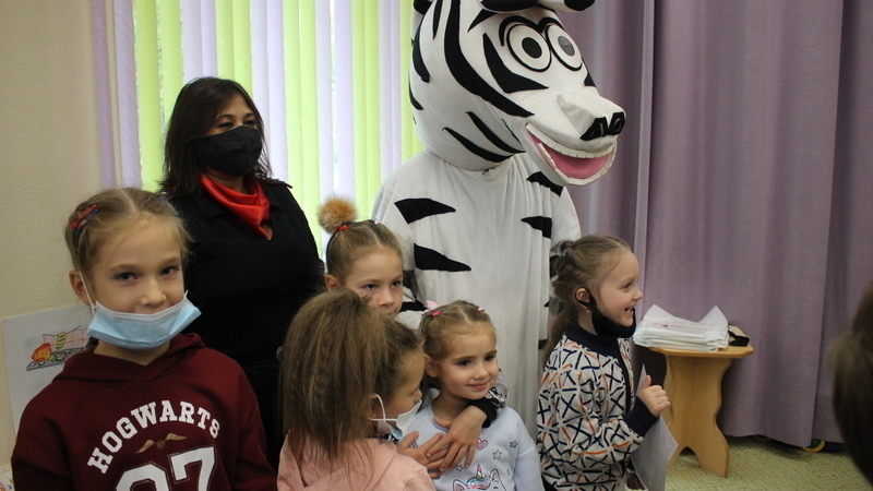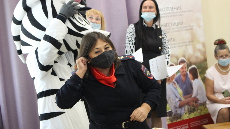 При входе в зал гостей ждала забавная зебра, веселившая ребят. На мероприятии присутствовал инспектор по пропаганде безопасности дорожного движения Евгения Новикова, которая провела с ребятами веселую игру « Что же делать?» о правилах поведения на улице. Детвора и их родители активно участвовали и порадовали правильными ответами.