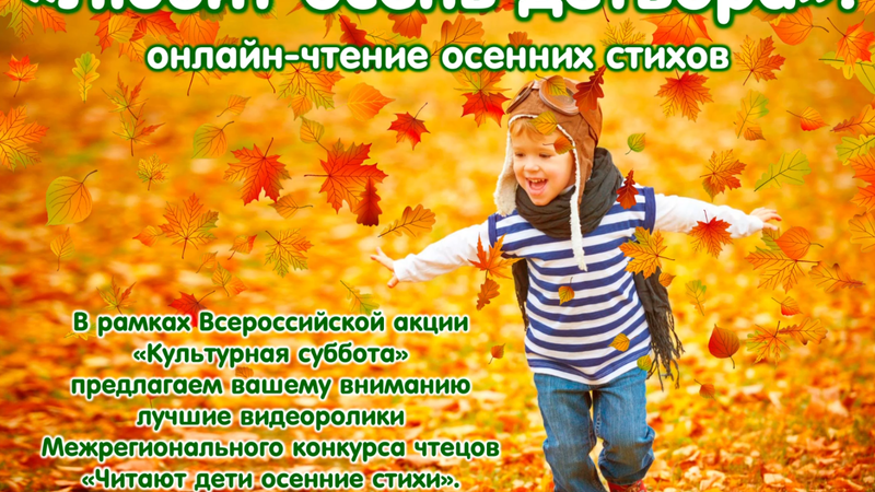 В рамках Всероссийской акции «Культурная суббота» предлагаем вашему вниманию лучшие видеоролики Межрегионального конкурса чтецов «Читают дети осенние стихи».