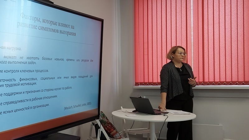 Продолжился разговор выступлением Ольги Щербина, старшего преподавателя кафедры дополнительного и профессионального образования ГАУДПО Мурманской области «Институт развития образования». Она познакомила участников с приемами, которые помогут предотвратить профессиональное выгорание, оставаться мотивированными и целеустремленными специалистами.