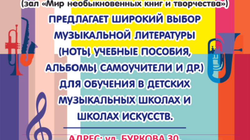 Центр чтения «Читай и Познавай» приглашает педагогов, учащихся музыкальных школ и их родителей в нотный отдел, где представлены ноты, учебные пособия, альбомы и самоучители, литература о музыке, биографии великих музыкантов