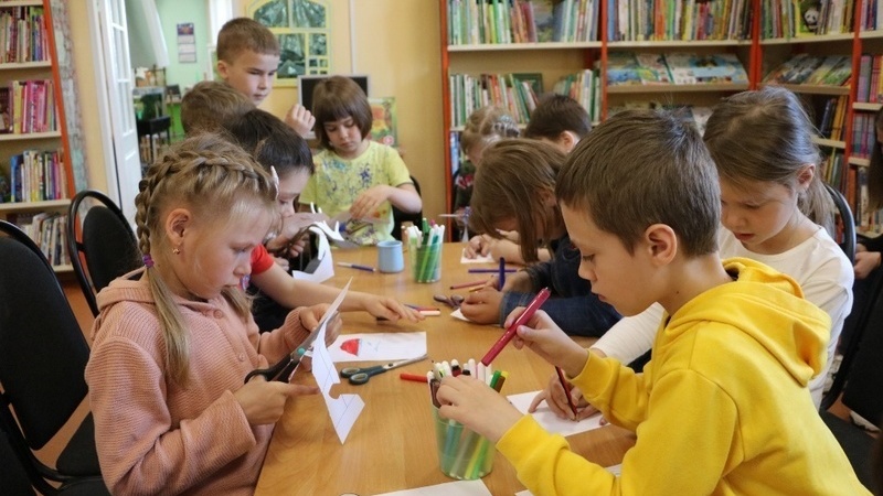 На творческом занятии ребята под руководством библиотекаря сделают забавную аппликацию – создадут из цветной бумаги и картона веселого щенка.