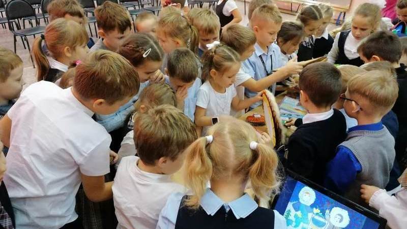 В завершение занятия учащиеся познакомились с великолепной коллекцией книг из музея детской рукописной книги в номинации «Мой сильный и маленький народ». Произведения, созданные их ровесниками, вызвали у детей настоящий восторг.