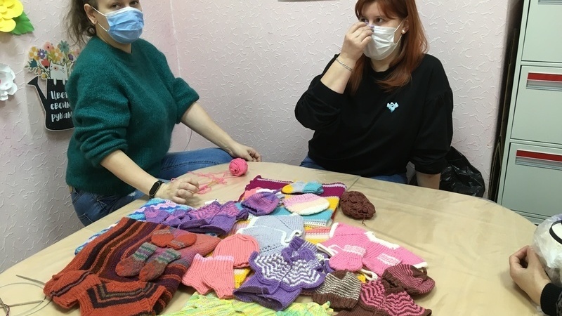 Клуб вяжет и безвозмездно передает в Мурманский перинатальный центр шерстяные носочки, шапочки и жилетки для малышей-торопыжек, так ласково называют деток, родившихся раньше срока.