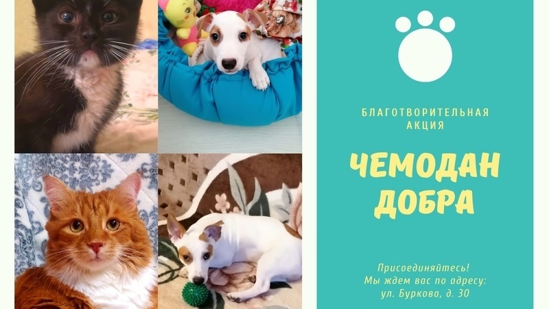 Для этого достаточно приобрести сухие корма или консервы для собак и кошек, наполнители для туалетов или впитывающие пеленки, игрушки и другие аксессуары и оставить их в "Чемодане Добра", расположенном в холле на первом этаже библиотеки.