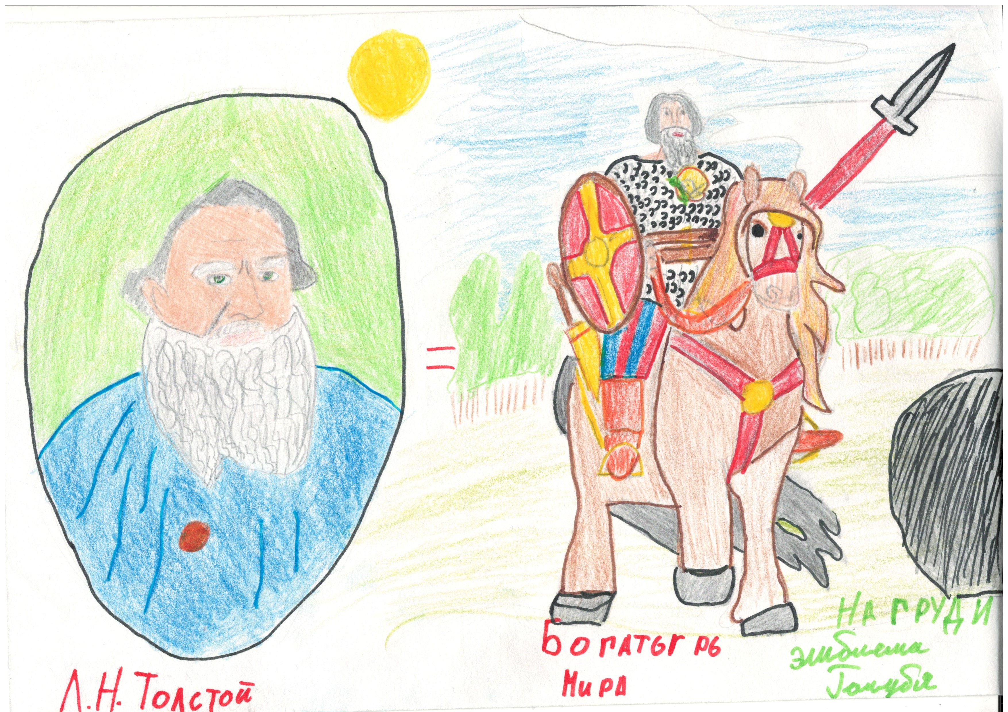 «Мой супергерой назывался Богатырь мира. Его суперспособность: приносить мир в каждую страну в которую он приедет. За основу я взял легендарного классика Л.Н. Толстого и объединил его с Ильей Муромцем…»