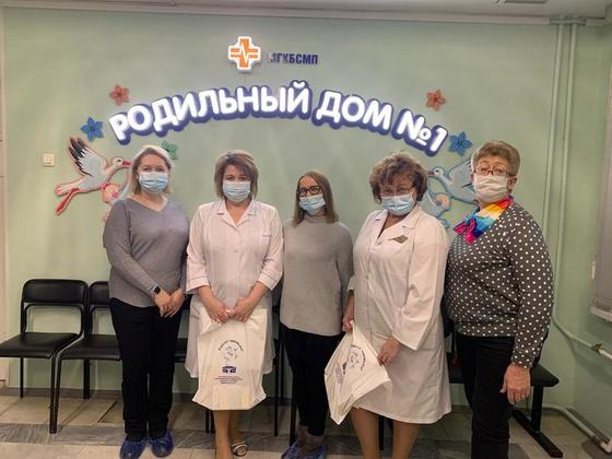 Сотрудники библиотеки передали в профильные отделения праздничные комплекты для вручения мамам, чьи дети родились 28 ноября, в День матери.