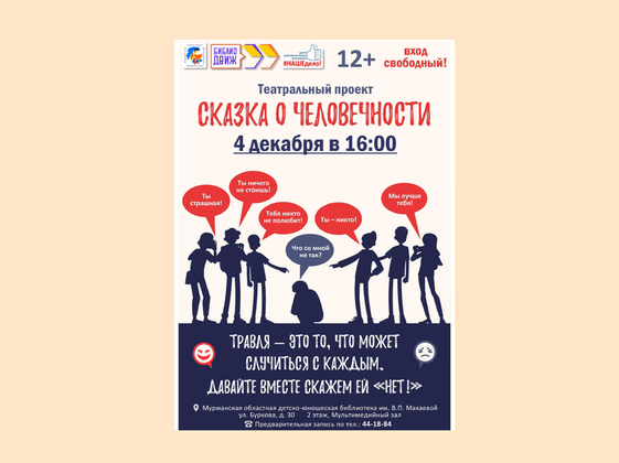 С помощью театрализации артисты попробуют рассказать о чувствах людей, столкнувшихся с травлей и буллингом, скажут  решительное "НЕТ" этому жестокому явлению!
