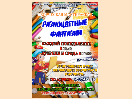 Кто хочет научиться рисовать, фантазировать с помощью красок, карандашей и листа бумаги, спешите в отдел детского чтения!