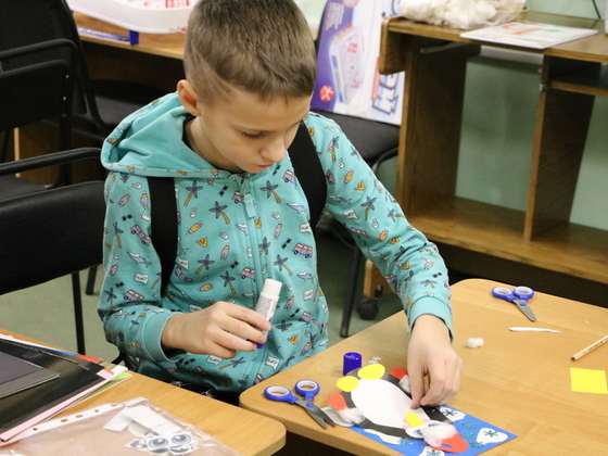 Юные читатели, посетившие занятие мастерской, сделали одного из помощников зимнего волшебника – новогоднего пингвина.