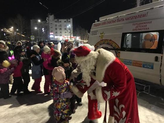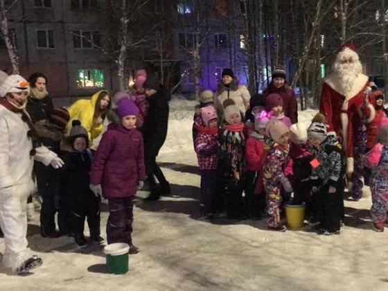 Баба-яга постаралась испортить праздник: запорошила дорожки, закрыла полеты в небе, словом, сделала все, чтобы дети не встретились с главным героем праздника. Даже злого волка вызвала из лесной чащи. Но юные кандалакшане не испугались зубастого хищника, а подарили ему теплый шарф.