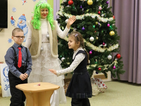 Всю неделю в зале «Счастливое детство» слышался детский смех, играла заводная музыка, и царило безудержное веселье. Маленькие читатели отправились в новогоднее путешествие в зимний лес, где они встретились со сказочными героями: Машенькой, Зимушкой-зимой и кукольной Бабой- ягой. Коварная ведунья заколдовала Зимушку, превратив ее в Кикимору болотную. Расколдовать «красавицу» помогли ребята и, конечно, Дед Мороз. Ведь ни одни злые чары не могут устоять перед его волшебной силой. Детвора вместе с героями веселились от души: играли в подвижные игры, забавные конкурсы, отгадывали зимние загадки и танцевали.