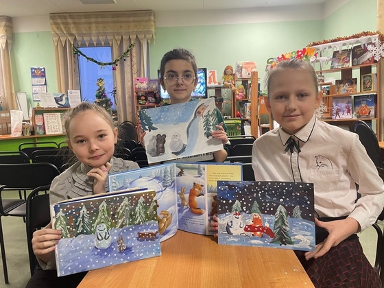 На этой неделе дети рисовали зимнюю историю зверят, а также слушали истории и смотрели иллюстрации из книги «Как развеселить снеговика».