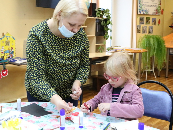 На занятии ребята создадут милого снеговика. Нос его украсят яркой морковкой, на голову наденут разноцветную шапочку из мягкой цветной бумаги, а на шею повяжут разноцветный шарф.