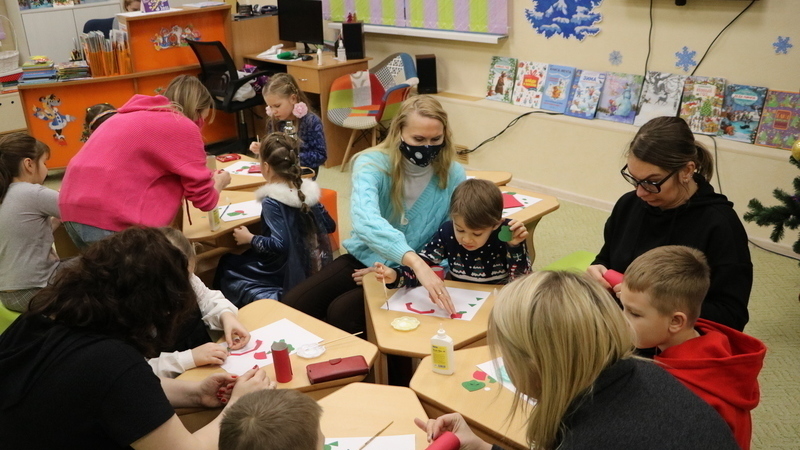 Сегодня в зале «Счастливое детство» поклонники мультипликационного героя Гринча смастерили похитителя Рождества.