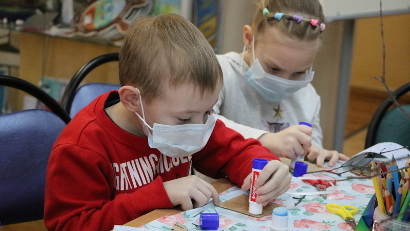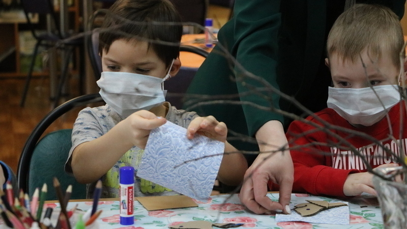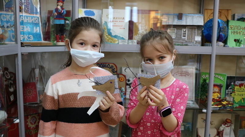 Сегодня в центре краеведения и страноведения маленькие читатели создавали экологическую поделку «Воробей»