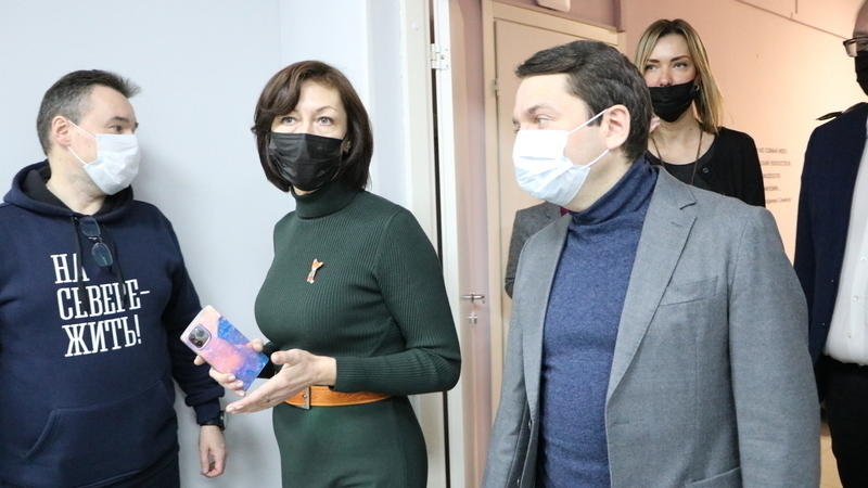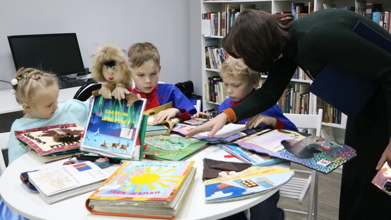 Перед началом встречи Наталья Владимировна Феклистова, директор библиотеки, представила Андрею Владимировичу тематические выставочные экспозиции, часть которых расположена в молодежном центре «БиблиоДвиж»: фотовыставку «100 саамских портретов» норвежского фотографа Торгрима Халвари и выставку книг Международного конкурса детской рукописной книги.