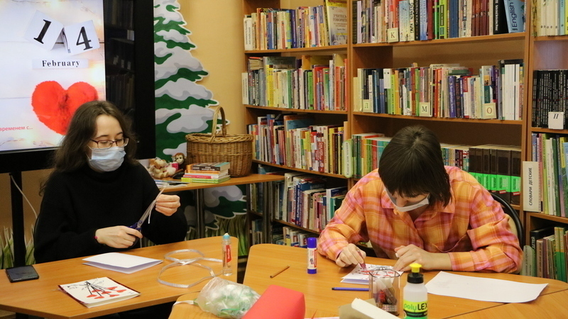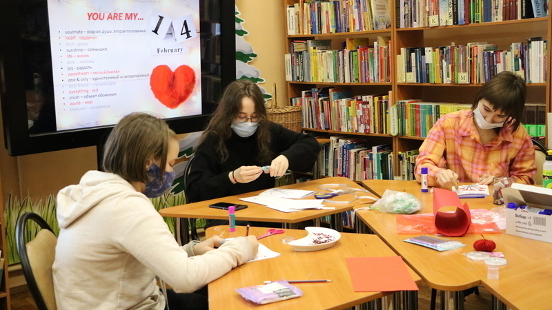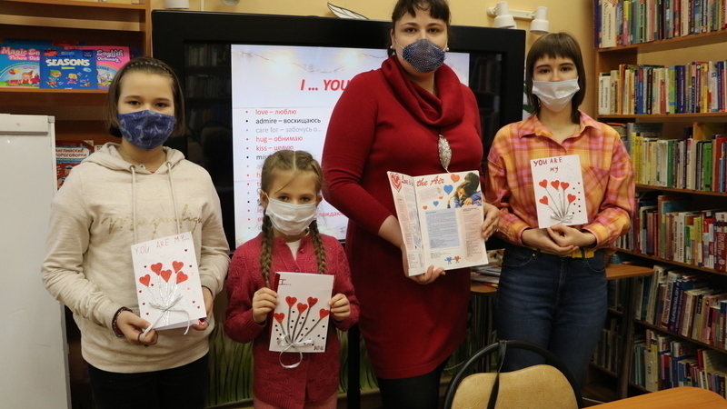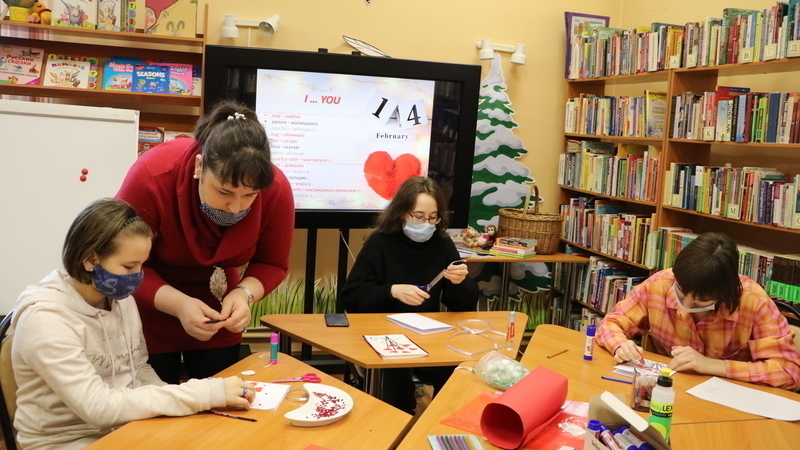 Занятие сопровождалось словами на английском языке. Ребята использовали их для выражения своих тёплых чувств к адресату открытки. Для создания праздничного настроения играла приятная музыка – звучали известные песни о любви на английском. Перед тем как приступить к работе, участники мастер-класса посмотрели короткое видео с английскими словами по теме, повторили их вслух и перевели. Ребята послушали и почитали забавные стишки на английском, которые многие записали внутри открытки в качестве поздравительных слов. Все валентинки получились красивыми и трогательными. А главное, ребята попрактиковали свой английский и на деле убедились в необходимости учить английские слова.