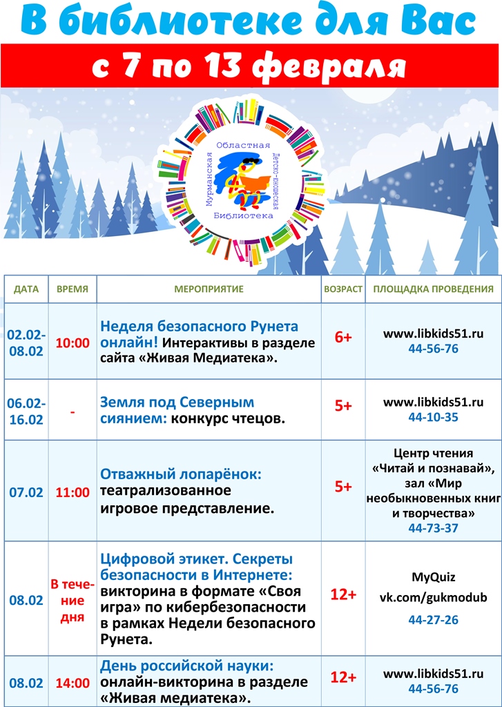 В рамках Недели безопасного Рунета гостей сайта ждут онлайн-интерактивы в разделе «Живая медиатека» и cемейный онлайн-квиз. Подготовлены разнообразные полезные, занимательные и увлекательные ресурсы, викторины, книжные