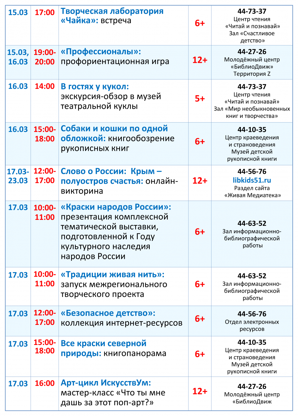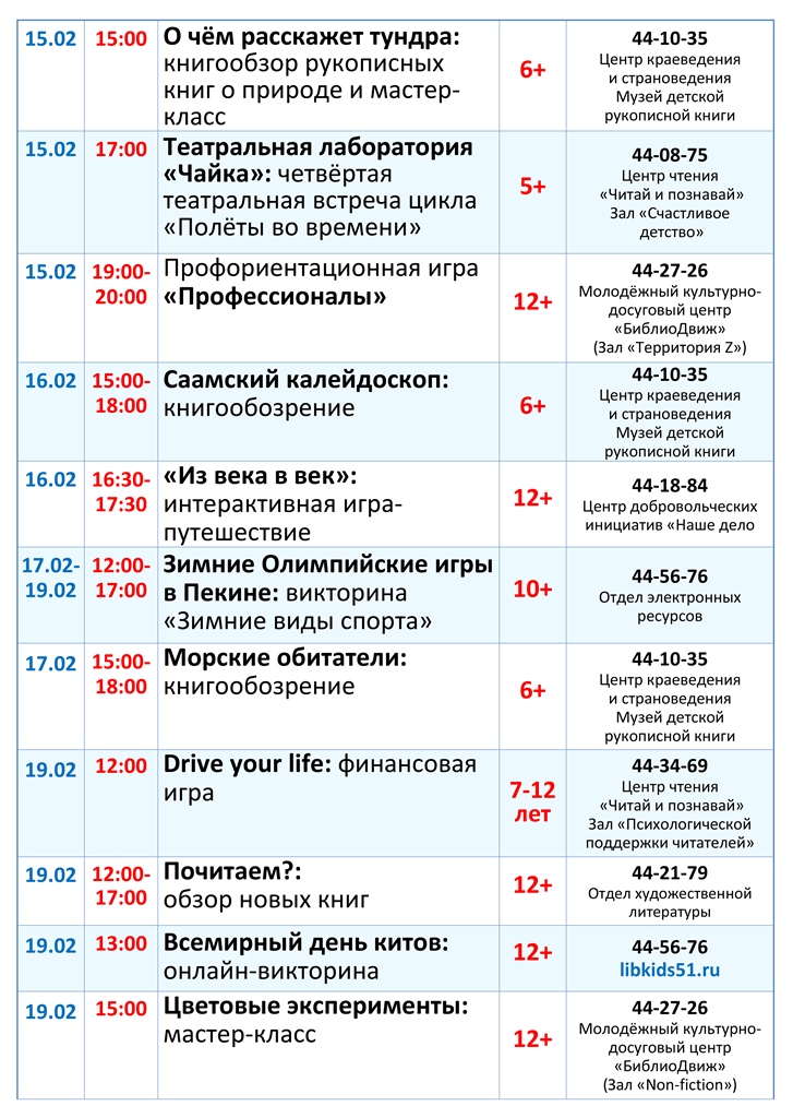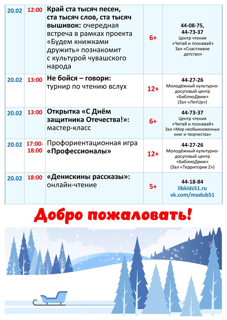 Уважаемые посетители, знакомьтесь с программой мероприятий, проводимых в библиотеке с 14 по 20 февраля