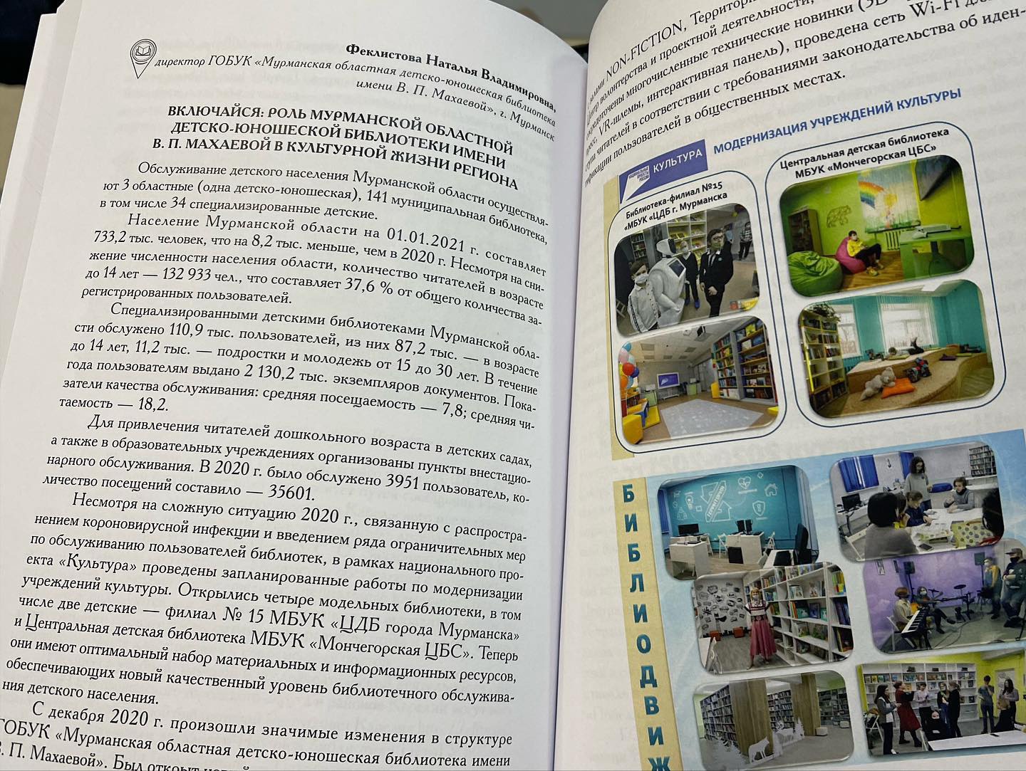 Сборник разработан для сотрудников, партнеров библиотек и широкого круга читателей. В него вошел и текст выступления Натальи Владимировны "Включайся: роль Мурманской областной детско-юношеской библиотеки имени В. П. Махаевой в культурной жизни региона.
