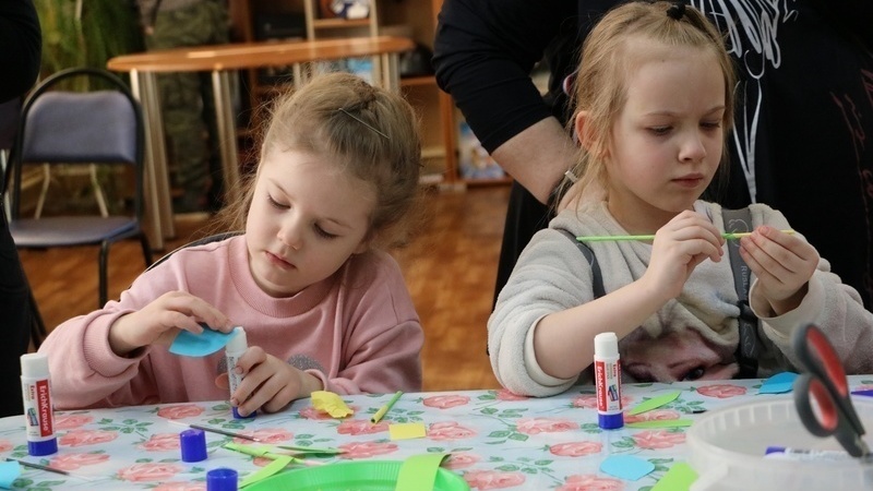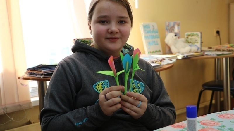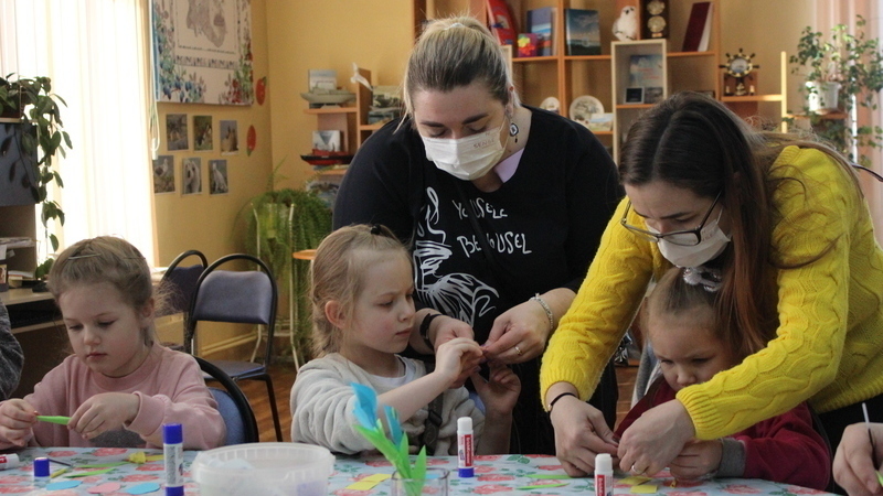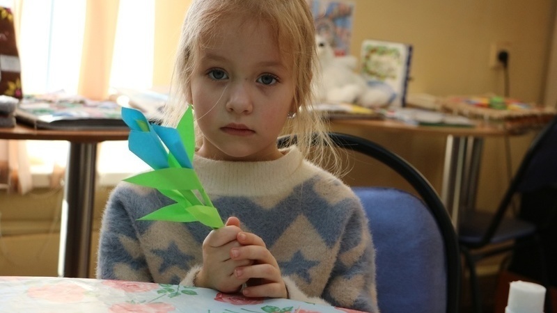 Занятие началось с «минутки английского». Дети учились говорить, как их зовут, повторяли названия цветов, смотрели красочную презентацию. На мастер-классе ребята делали бумажные цветы. Из заранее приготовленных деталей дети сначала мастерили отдельные части растения, а затем соединяли их вместе, и у них получался объёмный, красивый цветок. Многим участникам помогали родители, а кому-то ведущая мастер-класса. Все справились с заданием отлично и унесли домой красивые букеты, которыми порадуют любимых мам, бабушек, сестёр или подруг.
