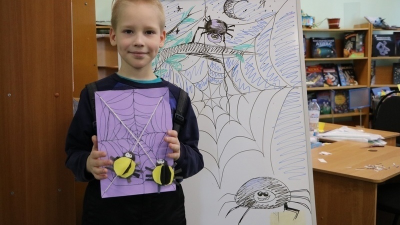 На творческом занятии ребята создавали забавных чудо-паучков. На листе картона они нарисовали паутинку, протянули нитку, по которой ползут цветные пауки. Участники хобби-клуба не только мастерили из бумаги, но еще и делились друг с другом о том, каких пауков они знают, рассказывали об их особенностях.