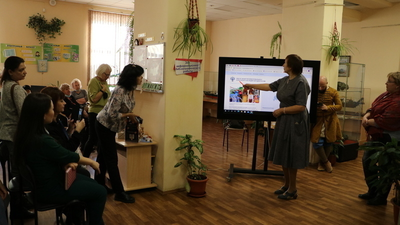 Главный библиограф отдела информационно-библиографической работы и педагогического общения Светлана Ивановна Бузук рассказала присутствующим о разделах экспозиции и их наполнении.