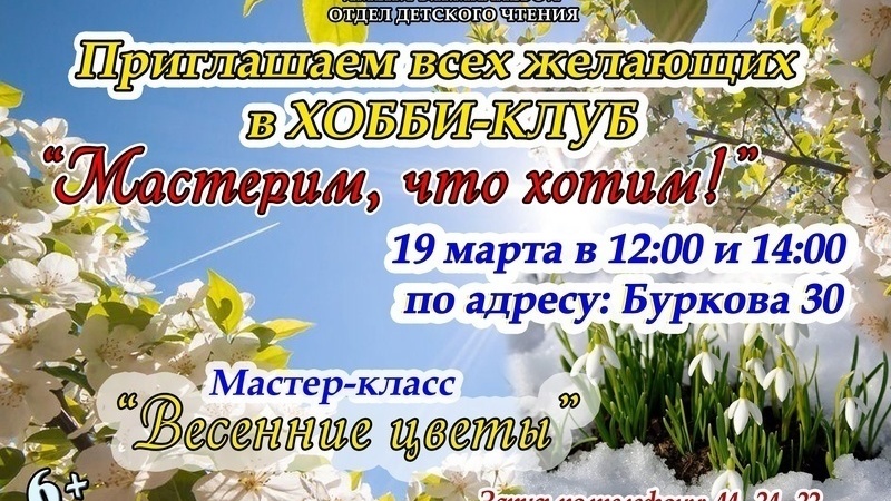 19 марта в 12:00 и 14:00 в отделе детского чтения состоится очередное занятие хобби-клуба «Мастерим, что хотим»