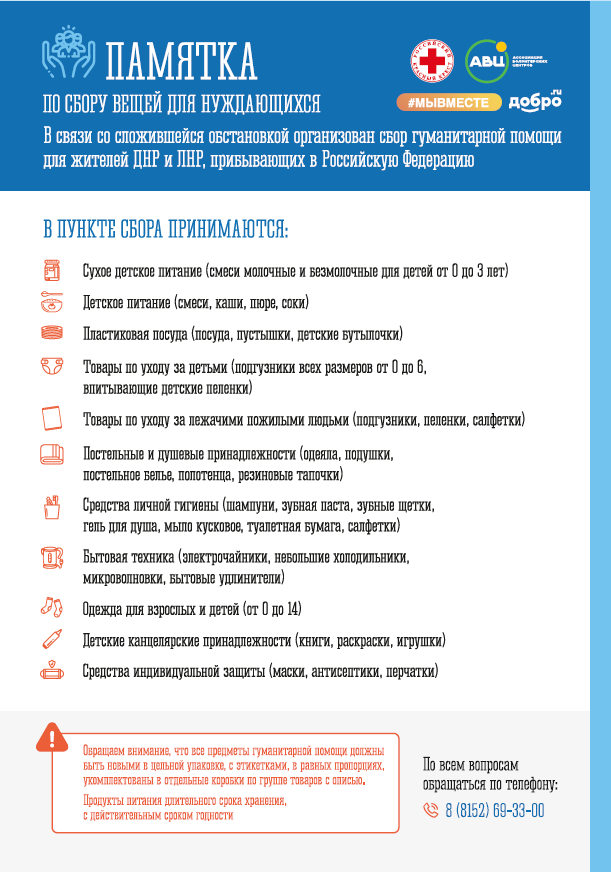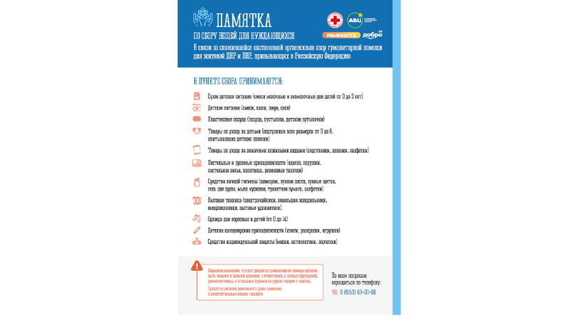 В памятке указаны пункты сбора и список того, что можно передать нуждающимся.