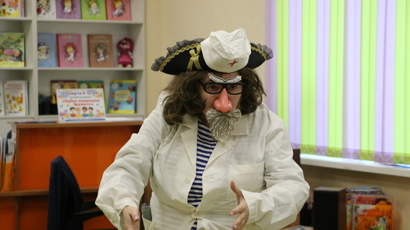 Ребят ждал сюрприз – к ним на праздник пришел хитрый Бармалей, переодетый в доктора Айболита.