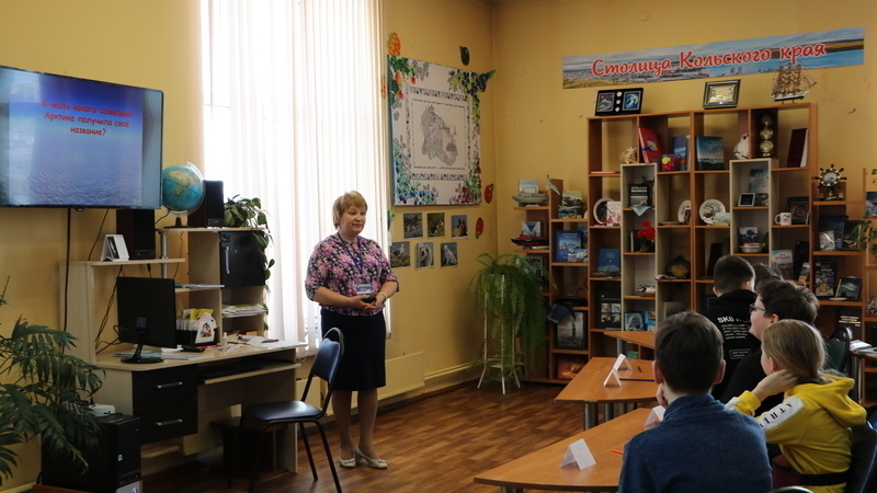 В центре краеведения и страноведения соревновались юные исследователи Арктики. Это ребята из школьного клуба «География Мурманской области» при гимназии №6. Они отвечали на вопросы о путешественниках и покорителях Северного полюса, о природных явлениях, о животном и растительном мире Арктики. Ребята узнали, что Арктику называют краем белого безмолвия, шапкой мира, макушкой Земли. Хотя участники немного затруднились с ответом на вопросы: «На какой широте расположен город Мурманск» и «Сколько дней длится полярная ночь и полярный день на Северном полюсе?», это не помешало им успешно пройти испытание.