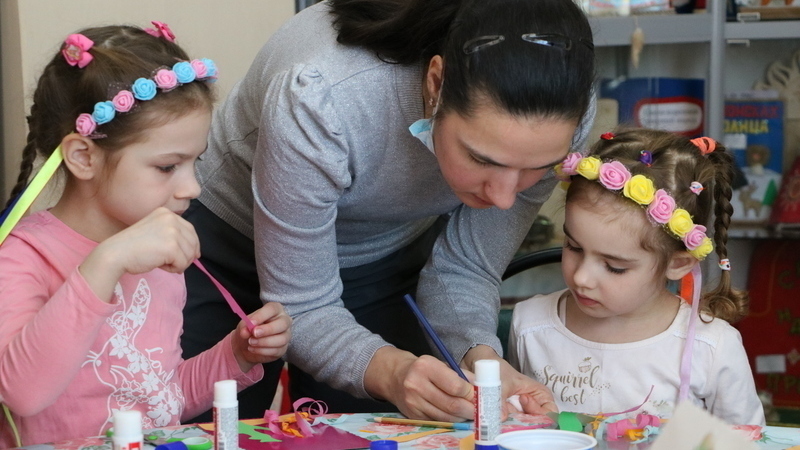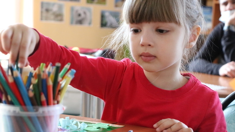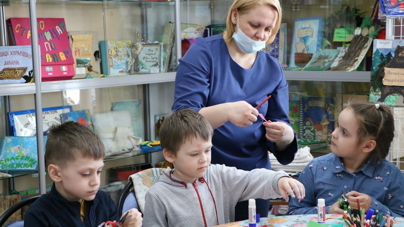 Сегодня в центре краеведения и страноведения юные читатели мастерили яркую аппликацию с использованием «пупырчатой» плёнки