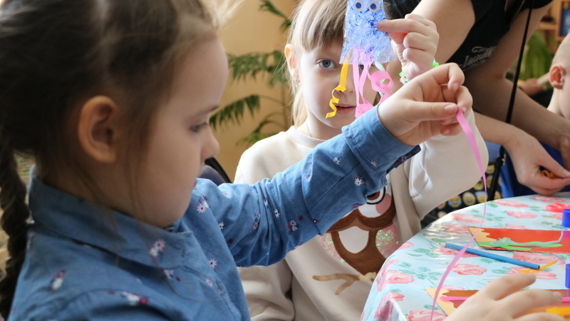 Именно из неё ребята вырезали туловище медузы и раскрасили её разноцветной гуашью. Затем из цветной гофрированной бумаги сделали ножки и поместили красавицу на дно морское. У каждого получилась своя неповторимая аурелия.