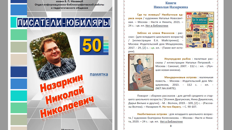 1 апреля 2022 года известный детский писатель, переводчик и библиотерапевт Николай Николаевич Назаркин празднует красивую круглую дату – 50 лет.