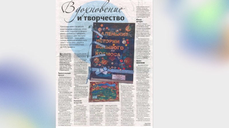 «Гостящие в Орле книги становятся источником вдохновения для зрителей маленьких, многие из которых, пролистав книги о чужом крае, начинают неподдельно интересоваться своим», - пишет Анастасия в материале «Вдохновение и творчество».