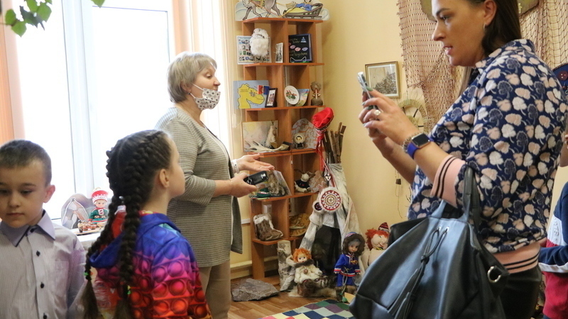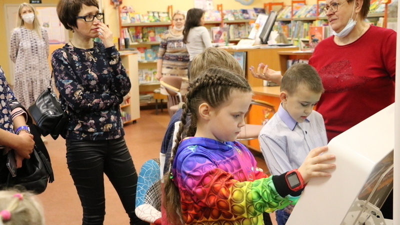 А после семинара дети и родители отправились на экскурсию по библиотеке. Заведующая отделом детского чтения Галина Федоровна Загреба рассказала гостям об интерактивном столе, установленном в отделе. Юным читателям очень нравится проводить время за сенсорным терминалом, на котором можно поиграть в развивающие игры и поразгадывать тематические головоломки. В отделе краеведения и страноведения Людмила Григорьевна Коновалова показала ребятам «уголок» стилизованный под быт народов Севера. Также сотрудники инспекции посетили Музей детской рукописной книги, который произвел на гостей неизгладимое впечатление.