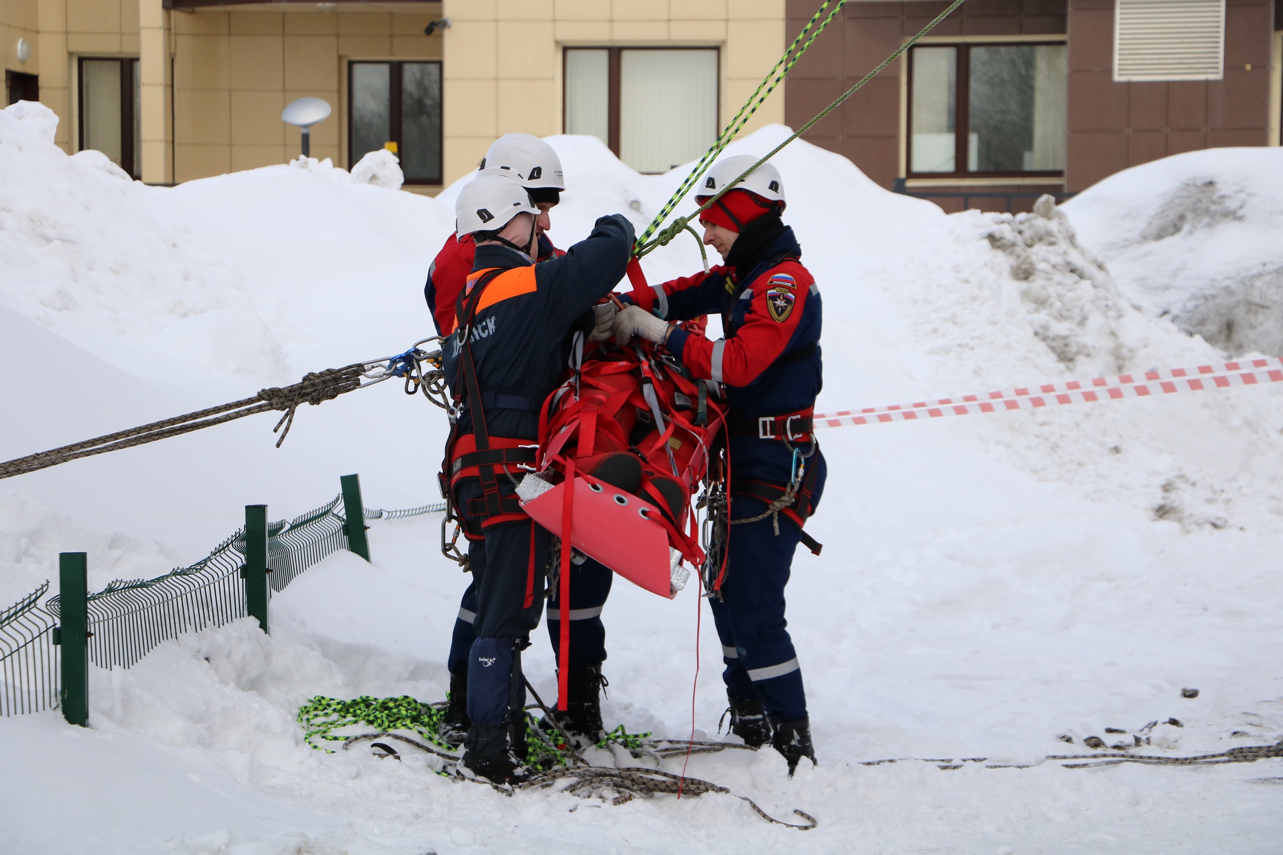 Огромный восторг зрителей вызвала работа спасателей по спуску пострадавшего с крыши.
