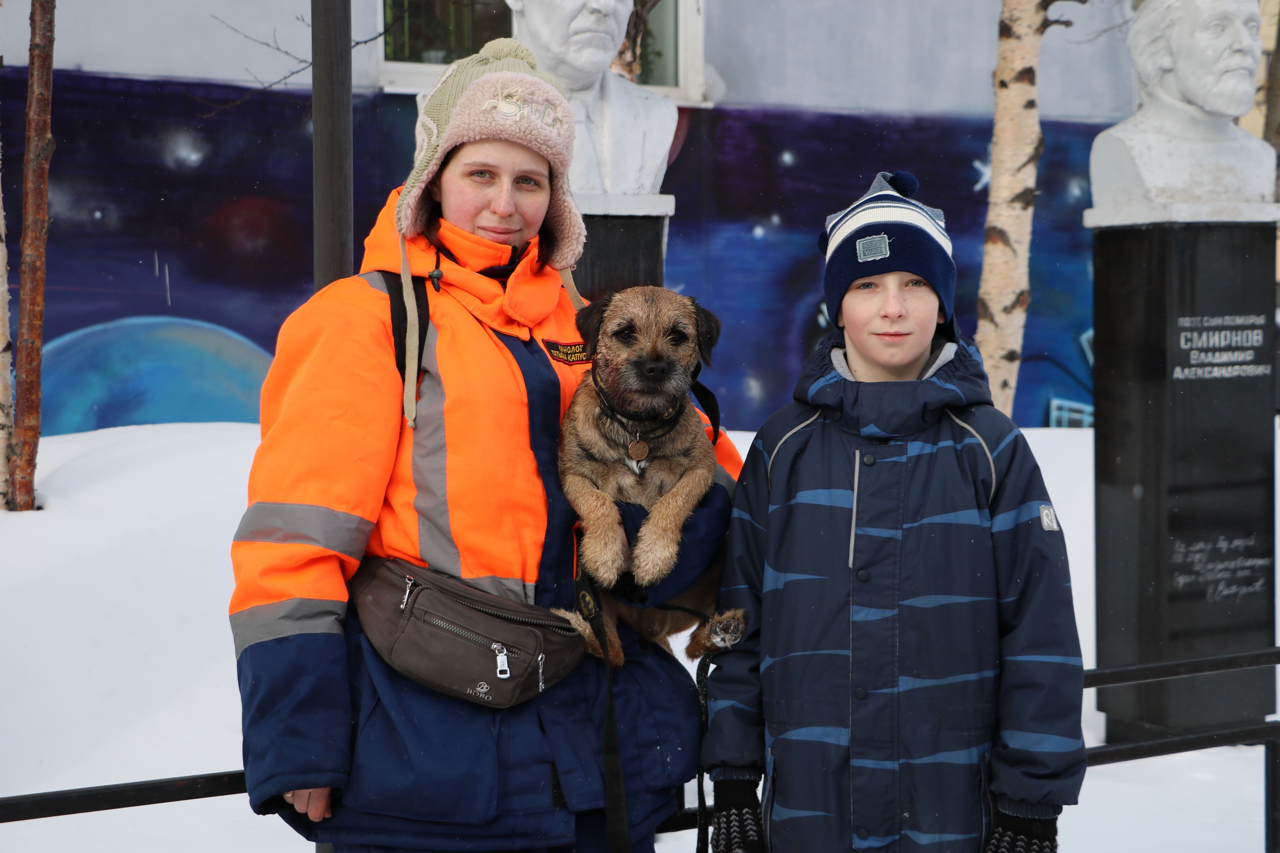 Спасатели и служебные собаки продемонстрировали свои умения. Отважный бордер-терьер Дэйви Джонс отыскал пострадавшего, пропавшего в лесу, а затем участники студенческого добровольного спасательного отряда показали, как извлечь человека из-под снега и подготовить его к приезду бригады скорой помощи.