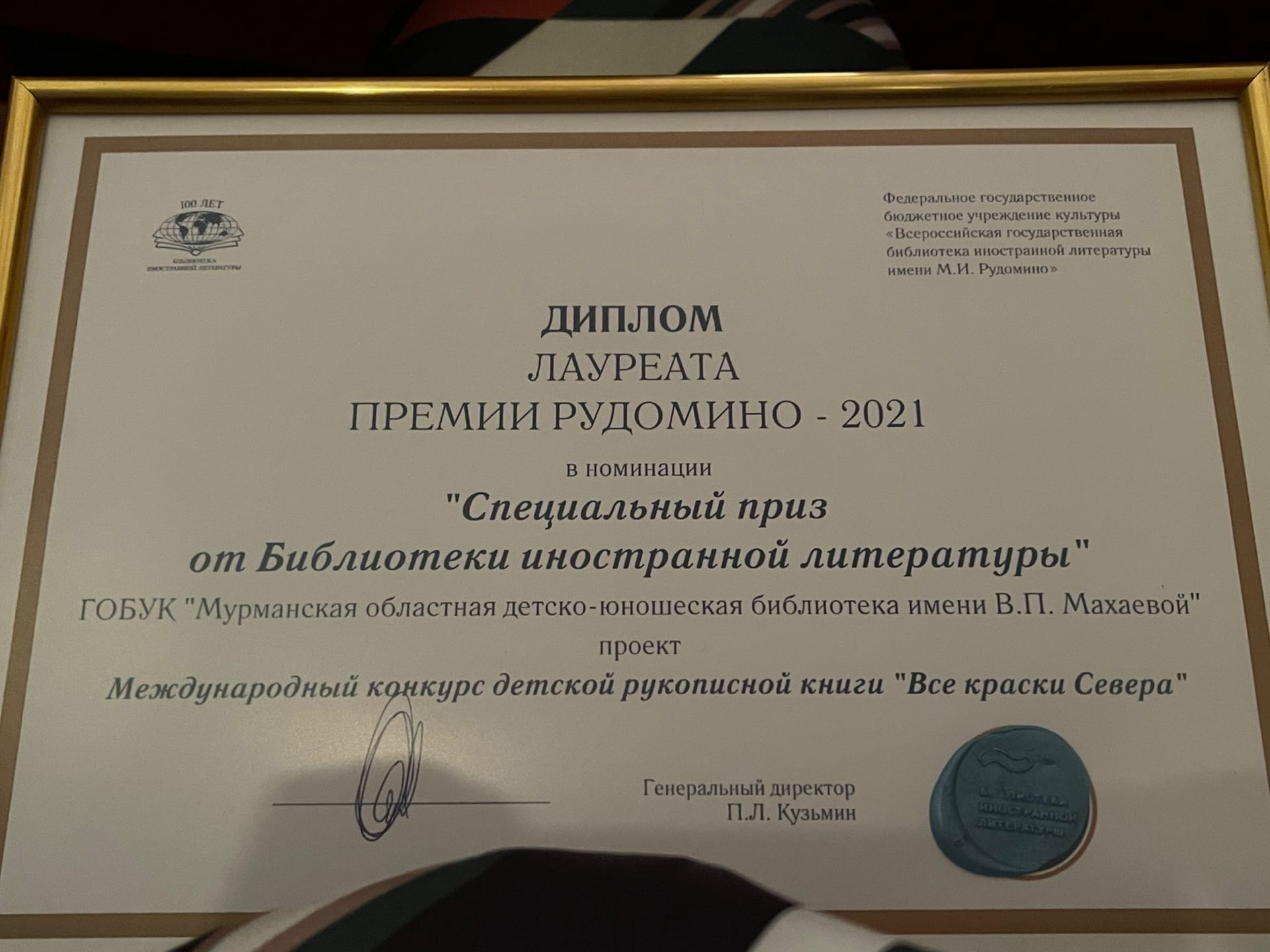 Областная библиотека имени В.П. Махаевой стала лауреатом первой «Премии Рудомино» в номинации «Специальный приз от Библиотеки иностранной литературы».