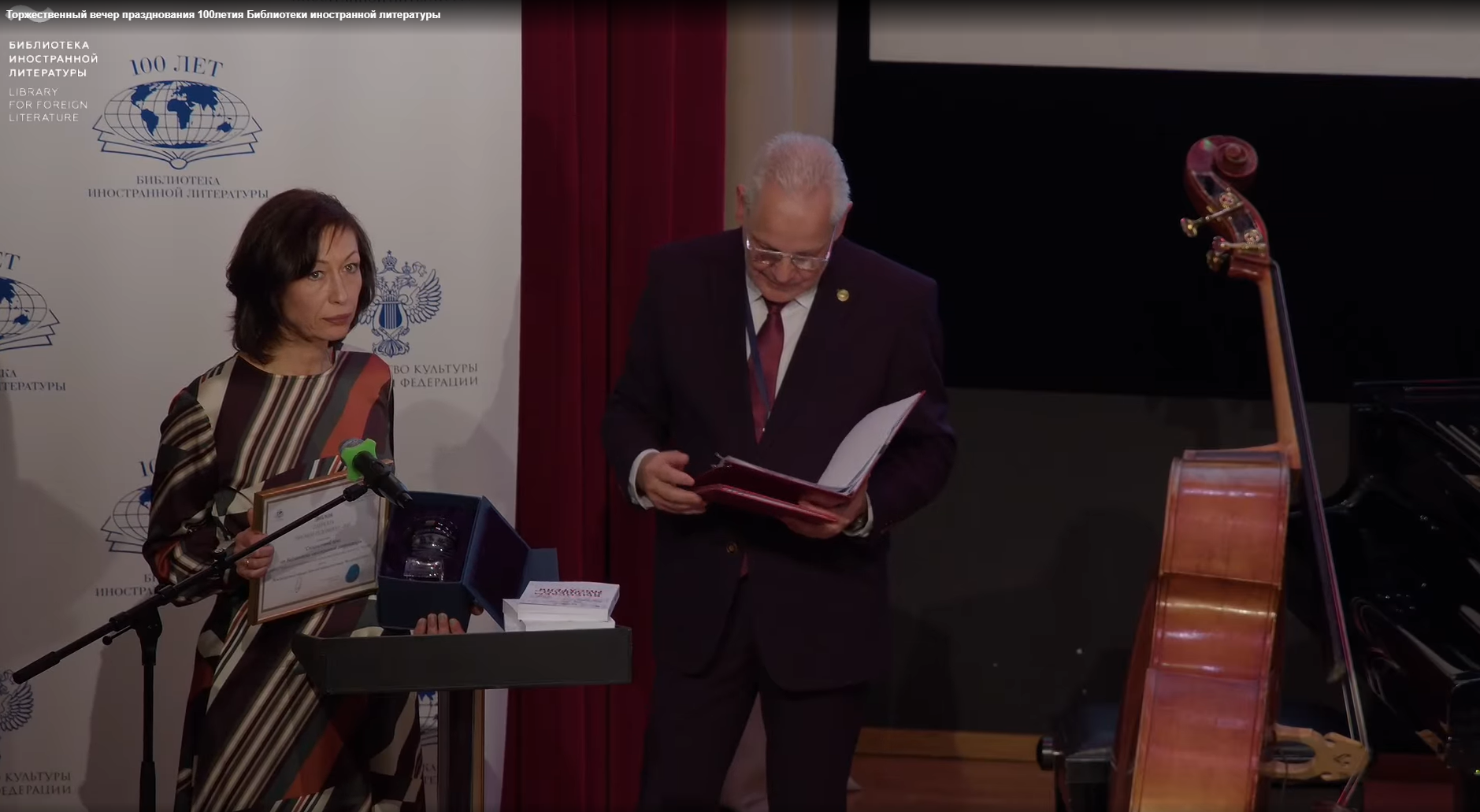 Накануне на сцене Большого зала организатора прошло награждение победителей конкурса. Генеральный директор «Иностранки» Павел Леонидович Кузьмин вручил Наталье Владимировне диплом лауреата и памятную статуэтку. Также наша библиотека получит денежный приз на развитие своих международных проектов в размере 50 тысяч рублей.