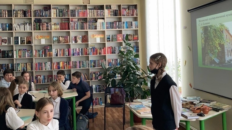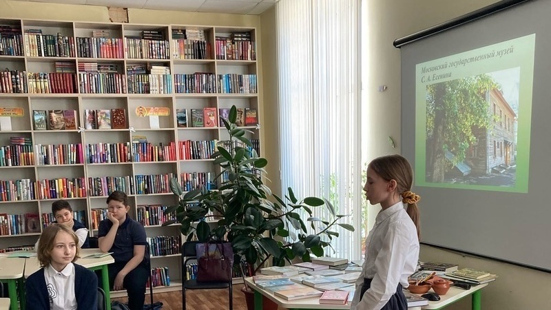 Темой встречи стал разговор о творчестве великого русского поэта С.А. Есенина. Учащиеся гимназии сначала отправились на виртуальную экскурсию, на родину поэта в село Константиново, где полюбовались красотой природы Рязанщины. Затем пятиклассники узнали, как прошли детские годы поэта. В доме родителей С. Есенина ребята увидели предметы крестьянского быта и попытались определить их назначение. С помощью презентации дети узнали, как учился Сережа Есенин в Константиновском земском училище, познакомились с историей появления редкой фотографии.