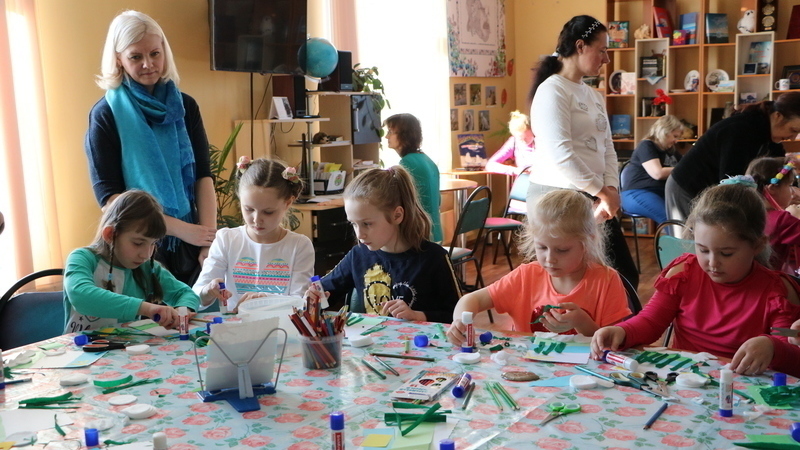 Ребята старательно создавали свои аппликации и у всех участников творческой мастерской получились уникальные и неповторимые работы.