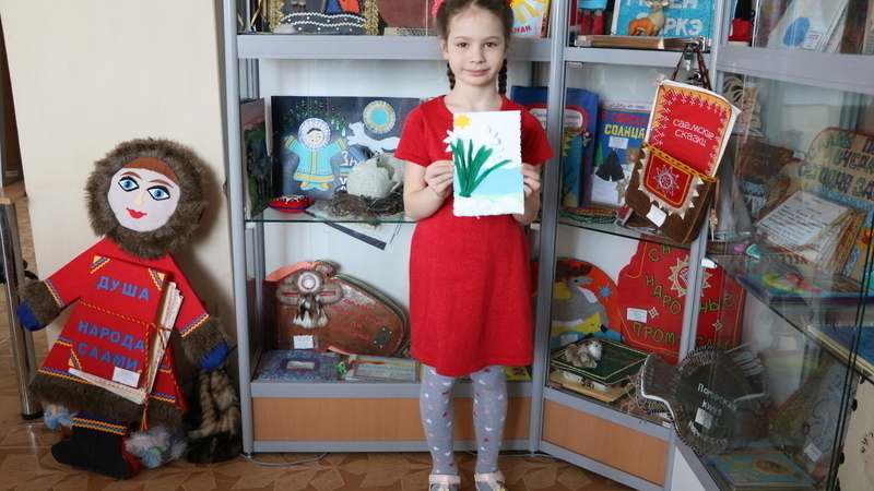 Из цветной бумаги ребята оформили сине-зеленый фон и ярко-желтое лучистое солнышко. Под весенним солнцем мальчишки и девчонки разместили вырезанные из мягких ватных дисков белоснежные подснежники с зелеными листочками.