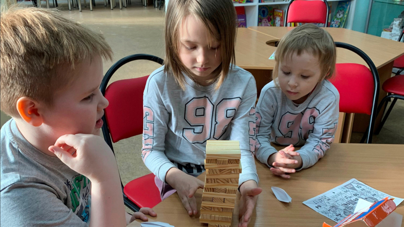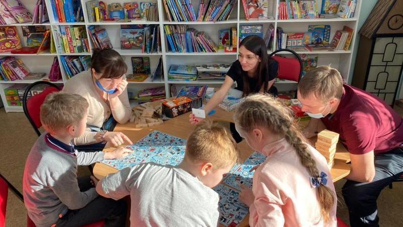 К первой встрече библиотекарь подготовила коллекцию игр, интересных как для детей так и для взрослых. Была выбрано несколько игр, в которые участники с большим азартом играли всей семьей.