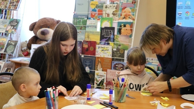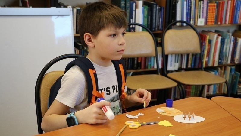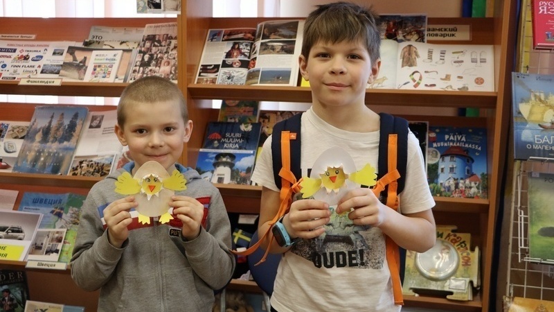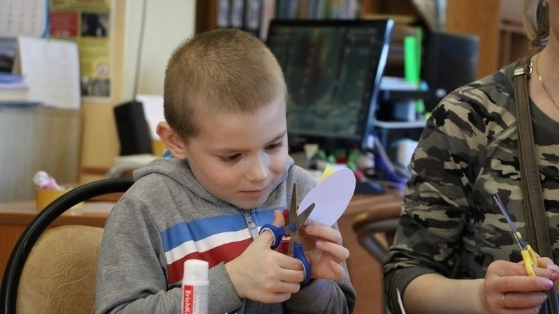 Мальчишки и девчонки, а также их родителей собрались, чтобы создать себе весеннее настроение. На творческом занятии ребята делали из цветной бумаги и картона забавного цыпленка в яйце или яркое весеннее дерево.