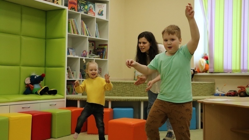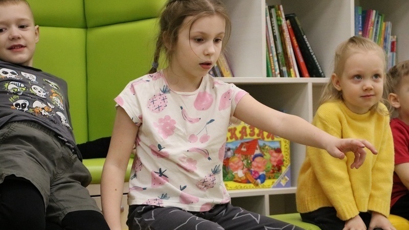 Не обошлось занятие без мини-перформанса. Дети выполнили упражнение на атмосферу. Они представили себя у моря, вообразили дождь, дующий в лицо ветер, поблуждали в тумане, немного замерзли и согрелись на ласковом солнышке.